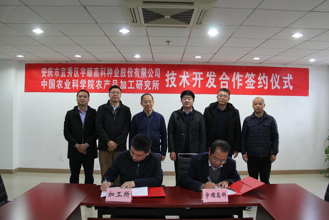 11月27日下午,中國(guó)農(nóng)業(yè)科學(xué)院農(nóng)產(chǎn)品加工所與我公司簽約儀式在北京舉行。中國(guó)農(nóng)業(yè)科學(xué)院農(nóng)產(chǎn)品加工研究所黨委書(shū)記王長(zhǎng)江、安慶市宜秀區(qū)區(qū)委書(shū)記婁雪松、成果轉(zhuǎn)化處副處長(zhǎng)常盛、新資源食品研究中心研究員佟立濤、區(qū)農(nóng)業(yè)農(nóng)村局局長(zhǎng)潘緒中、區(qū)文化和旅游局局長(zhǎng)何反修、區(qū)林業(yè)局副局長(zhǎng)李凱以及公司創(chuàng)始人王發(fā)文等出席。 雙方將本著“真誠(chéng)合作、互利共贏、由點(diǎn)及面、持續(xù)發(fā)展”的原則,在科技合作、成果轉(zhuǎn)化、產(chǎn)品研發(fā)等方面開(kāi)展技術(shù)合作,持續(xù)將中國(guó)農(nóng)業(yè)科學(xué)院的科技、資源、人才優(yōu)勢(shì)轉(zhuǎn)化為我司創(chuàng)新優(yōu)勢(shì)和競(jìng)爭(zhēng)優(yōu)勢(shì),為推進(jìn)特色稻產(chǎn)業(yè)集群項(xiàng)目建設(shè)及特色紅米產(chǎn)業(yè)發(fā)展提供科技支撐。